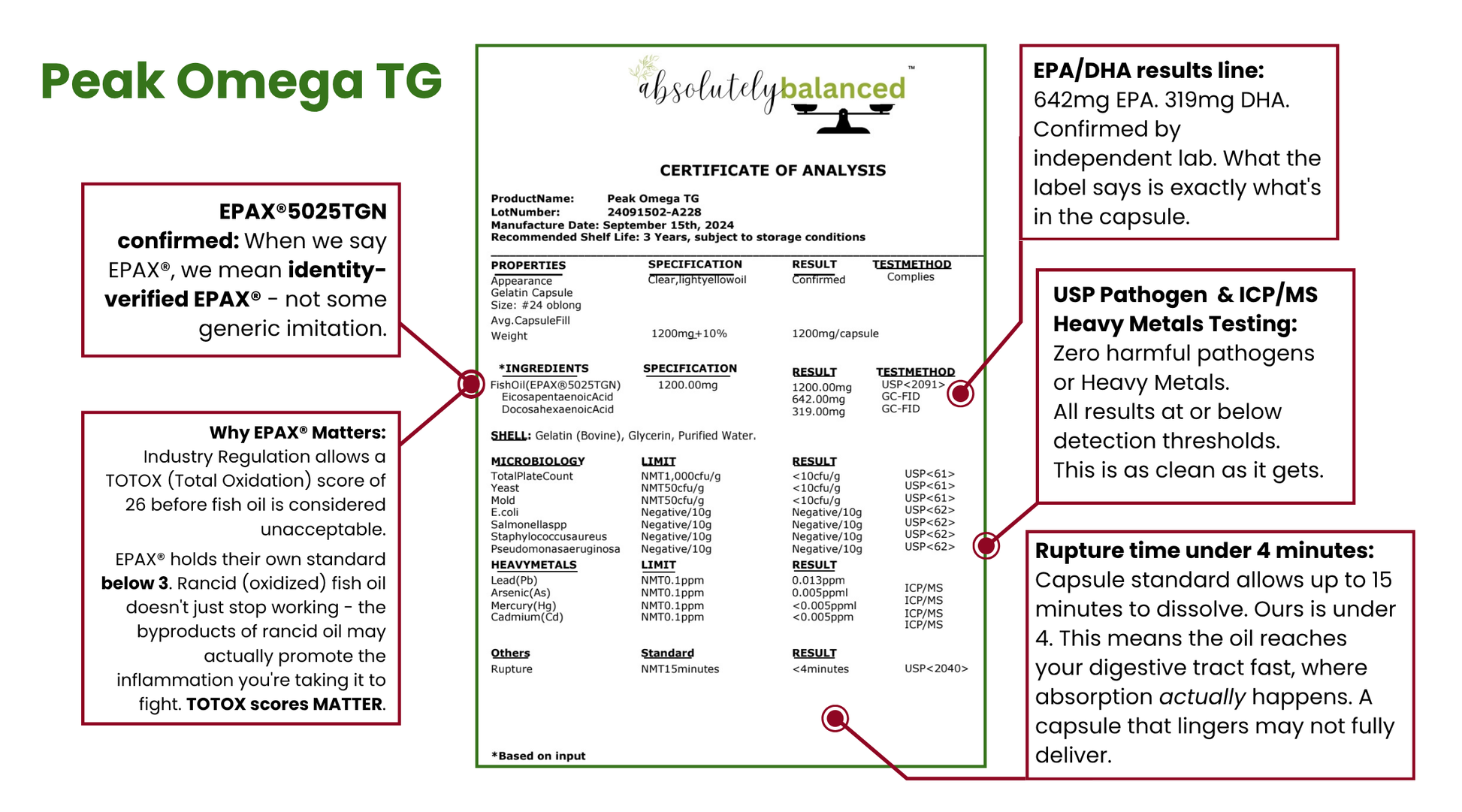 ✔️ Peak Omega TG. Triglyceride form fish oil sourced through EPAX®, the gold standard in the industry. Most omegas on the market are not this.