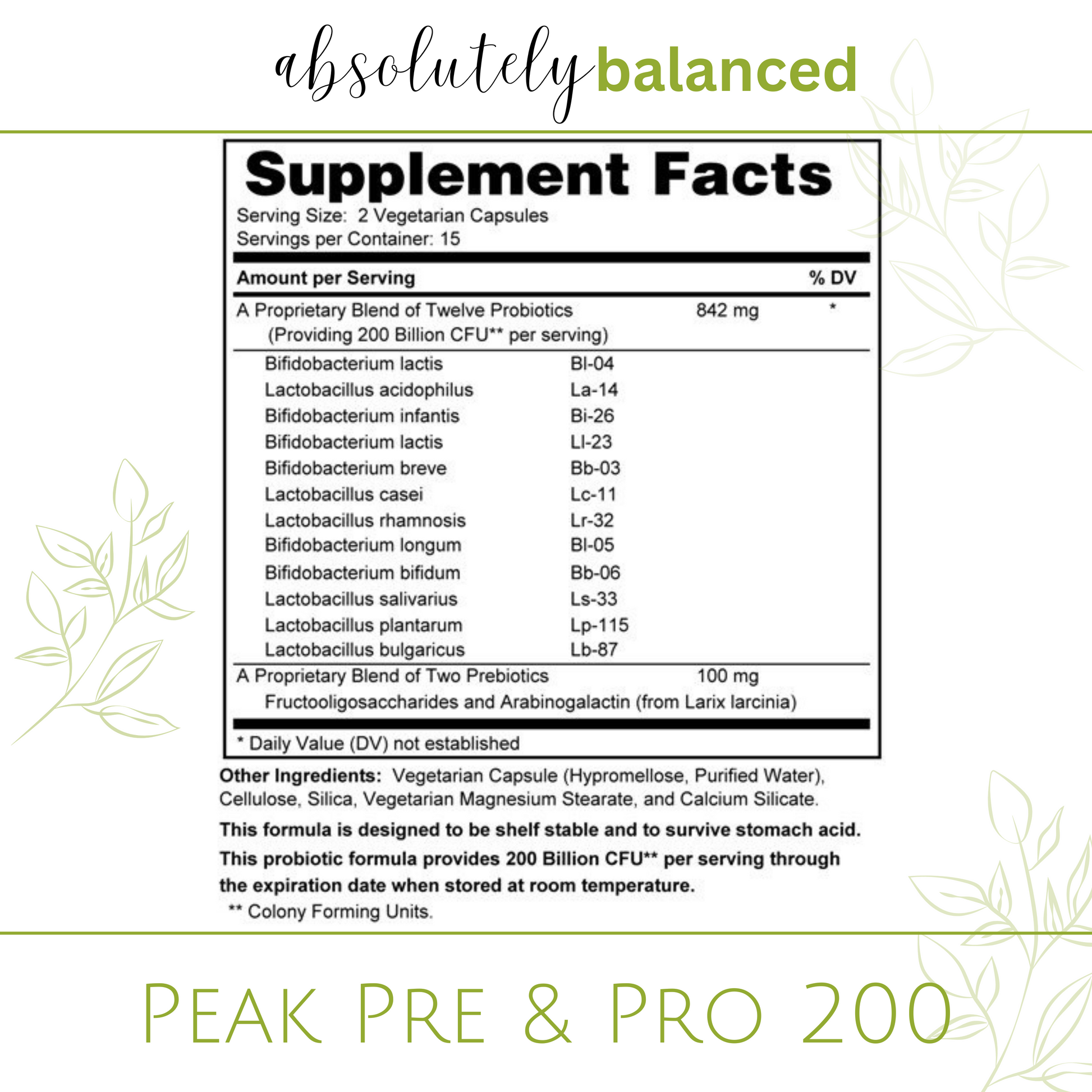 ✔️ Peak Pre & Pro 200. 200 billion CFU, 12 strain-identified probiotics, guaranteed at expiration. Acid-resistant capsules. Real prebiotics. Not theater.