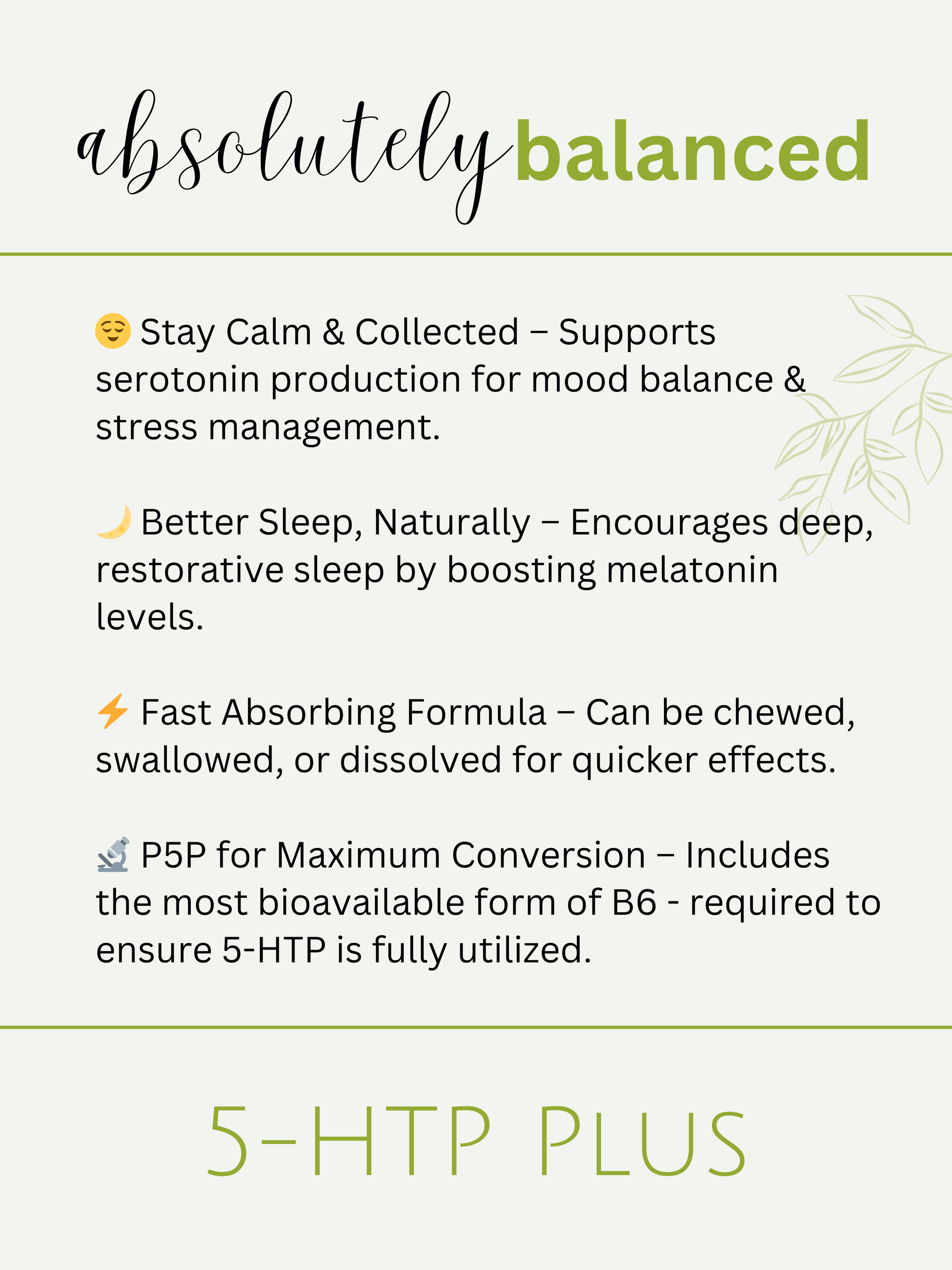 Unlike standard 5-HTP supplements, Absolutely Balanced 5-HTP Plus gives your body everything it needs to make serotonin (and melatonin) effectively.