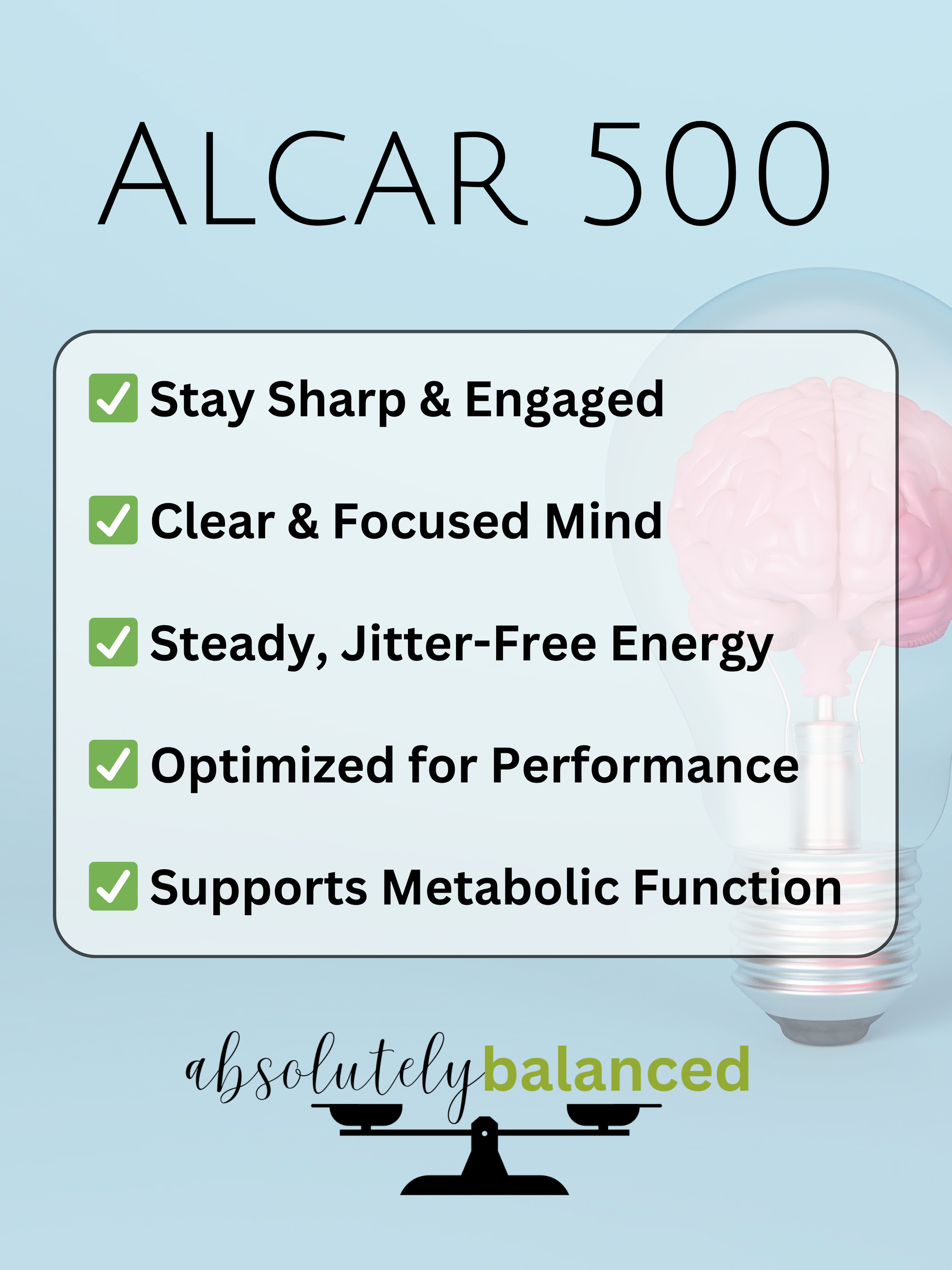 Need a serious boost in focus, mental clarity, and energy - without the jitters? ALCAR-500 is here to power up your brain and body. This high-performance supplement supports cognitive function, learning, metabolism, and nerve health in a way that few other ingredients can.