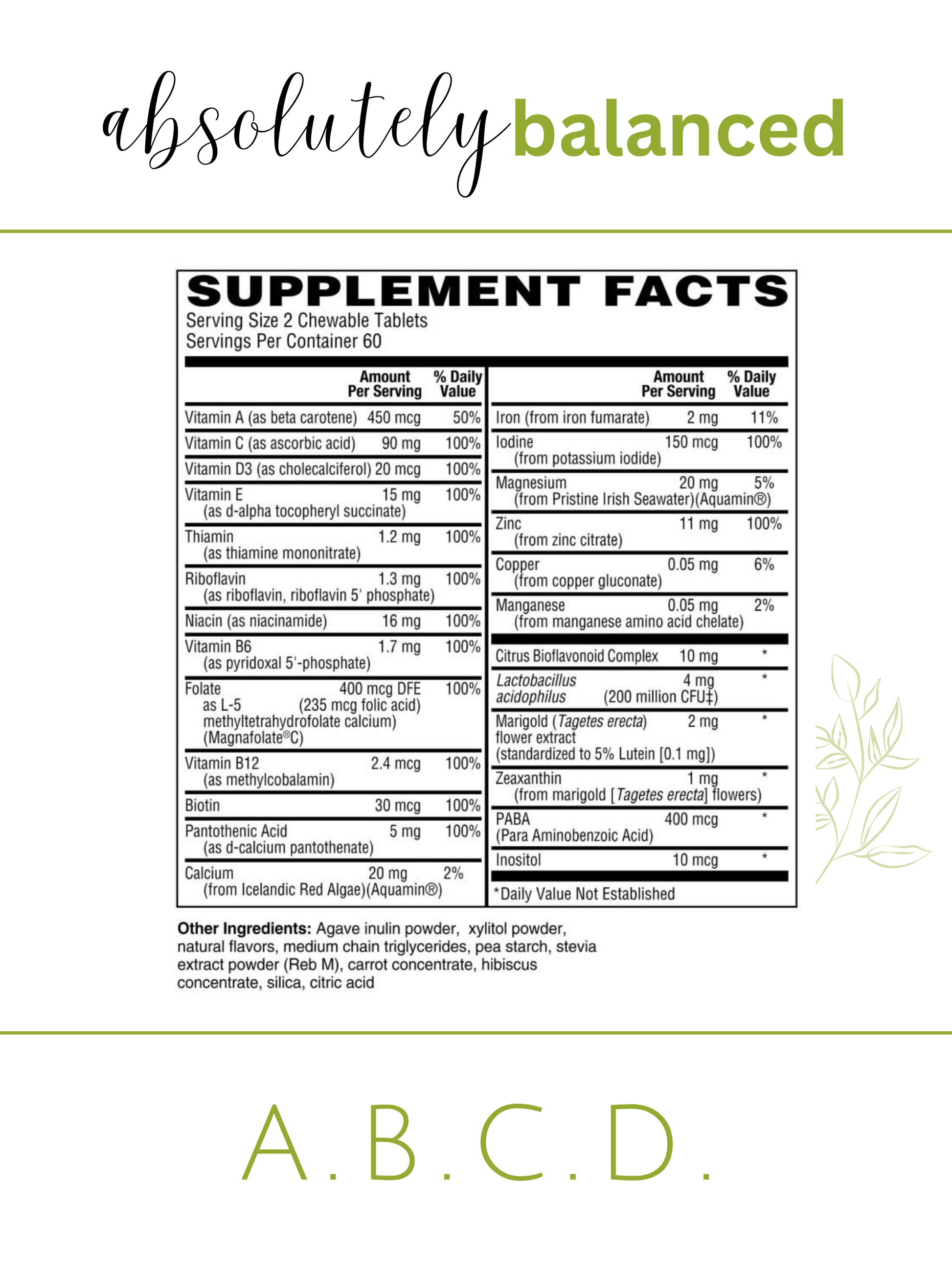 Each ingredient was thoughtfully chosen for a more complete, well-rounded supplement—because good nutrition is more than just individual pieces.