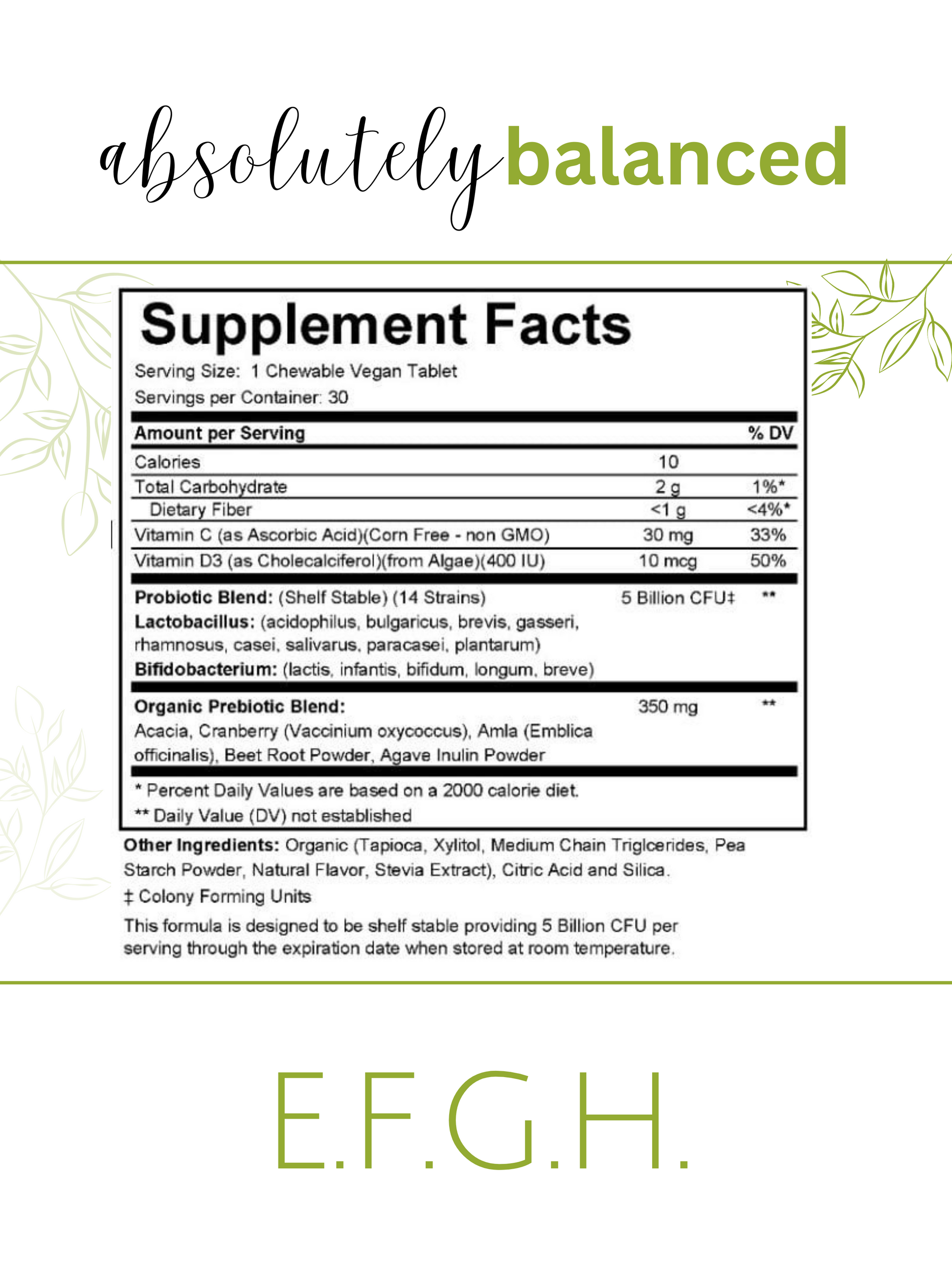 While E.F.G.H. was designed with little bellies in mind, it’s also great for teens, adults, and seniors who prefer a chewable over swallowing capsules.