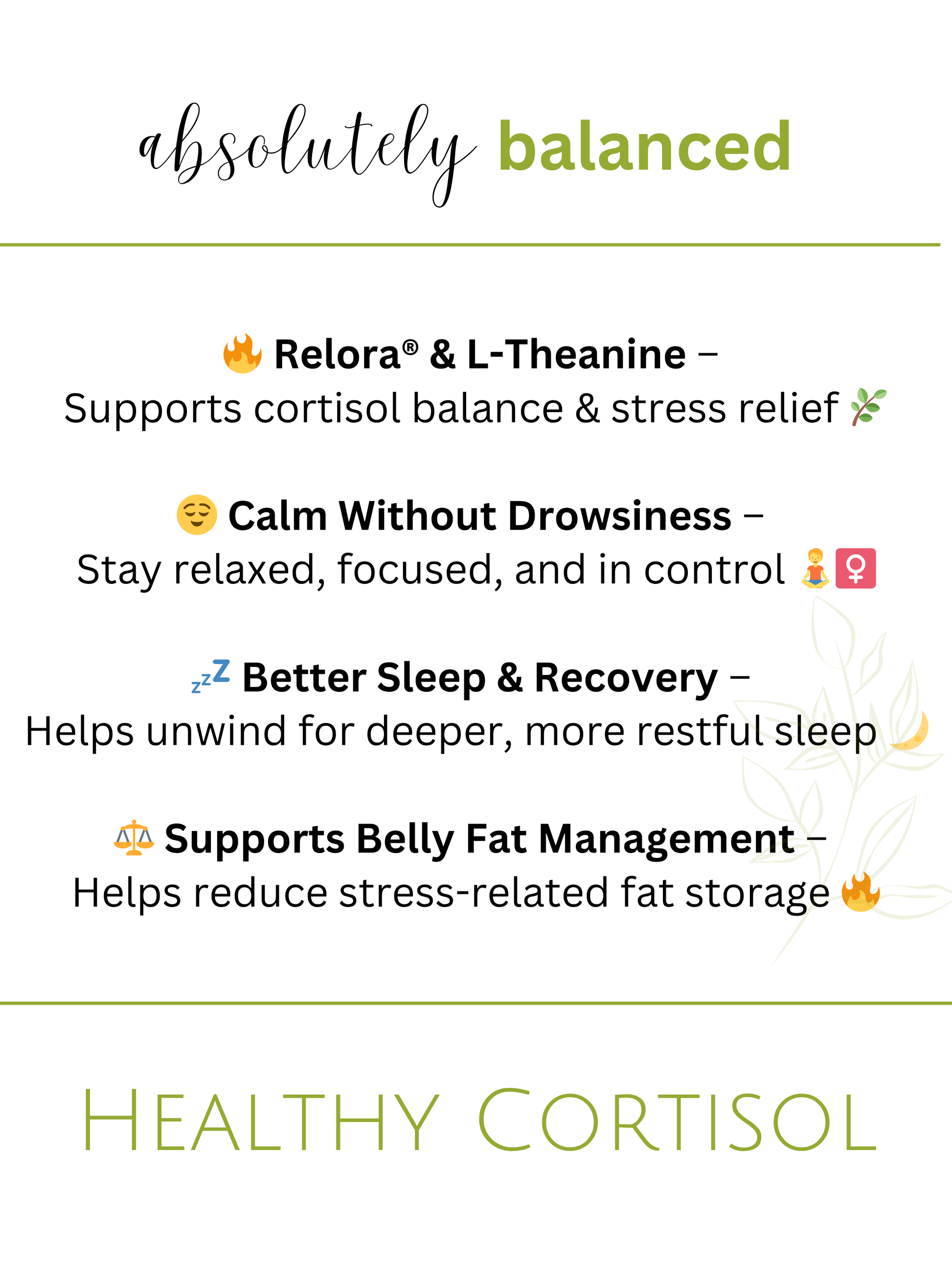 āļø Helps Fight Belly Fat & Sugar Cravings ā Stress-induced cortisol spikes trigger fat storage and hunger. Healthy Cortisol helps break the cycle.