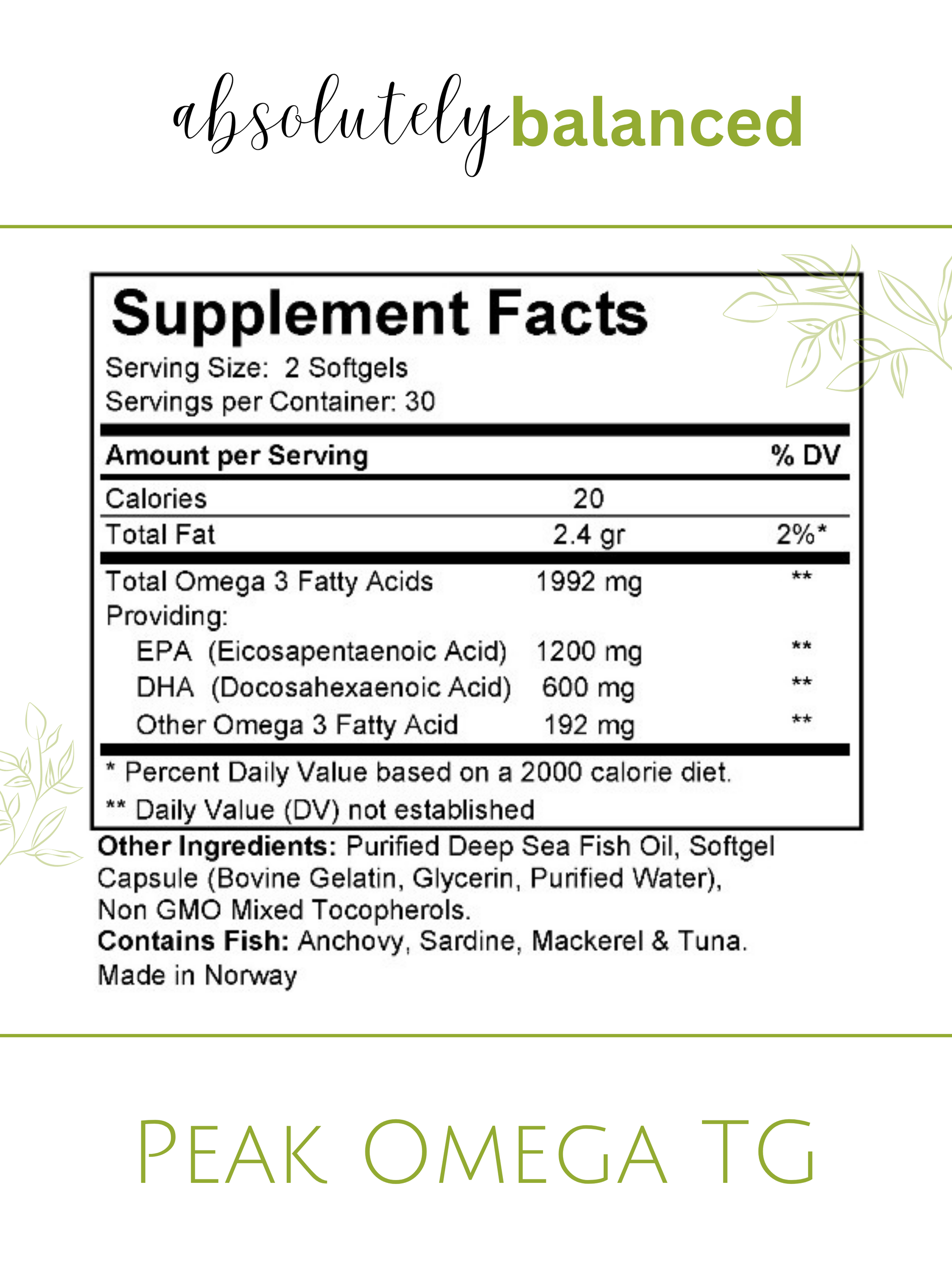 While most brands give you fish oil in the cheaper ethyl ester form (aka the processed, hard-to-absorb version), Peak Omega TG not only uses natural triglyceride form (the same structure found in real food), it uses EPAX Fish Oil!
