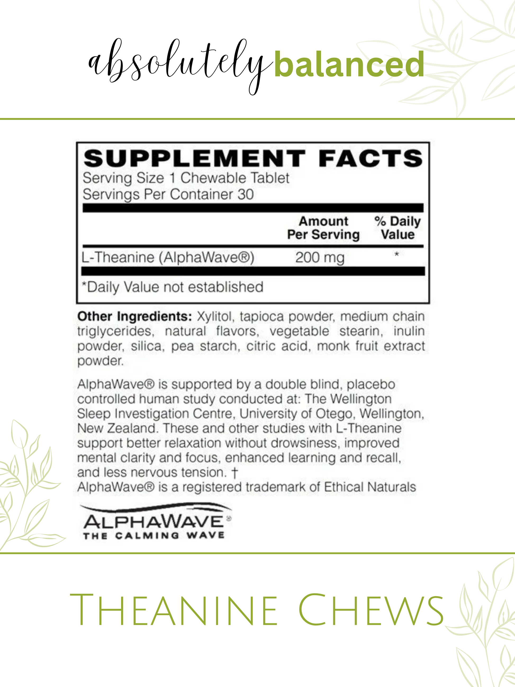 Each chew delivers 200 mg of AlphaWaveĀ® L-Theanine - a pure, standardized form thatās been clinically studied to: